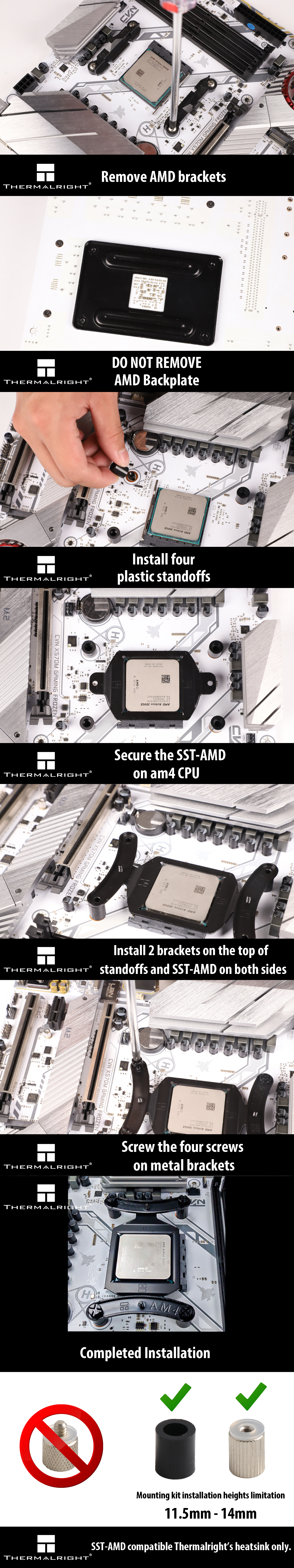 Thermalright SST-AMD. Soort: Montageplaat, Kleur van het product: Zwart, Supported processor sockets: Socket AM2, Socket AM3, Socket AM4, Socket FM1, Socket FM2
